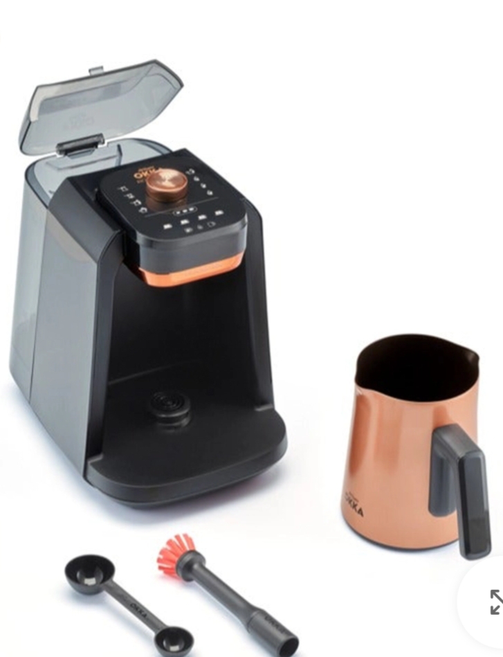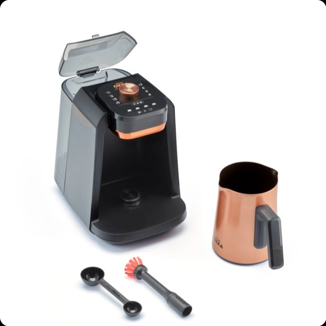 ماكينة تحضير القهوة التركية من أرزوم أوكا – 8 برامج – بخزان مياه – لون أسود × نحاسي